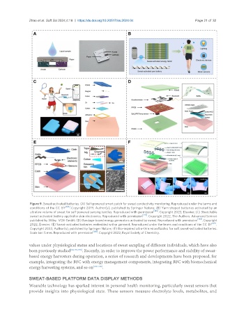 2022, Elsevier; (E) Sweat-activated batteries embedded within garment. Reproduced under the terms and conditions of the CC BY [69] .