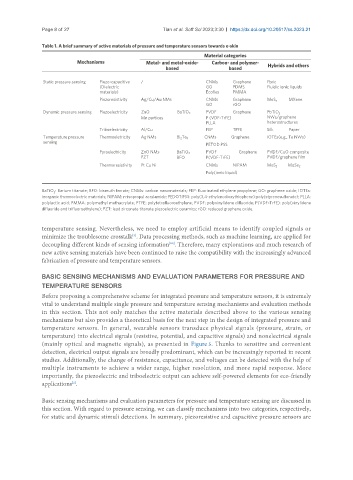 Table 1. A brief summary of active materials of pressure and temperature sensors towards e-skin