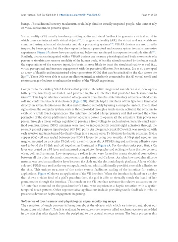 soft and conformal sheets of electronics [Figure 5B]. Multiple haptic interfaces of this type were laminated