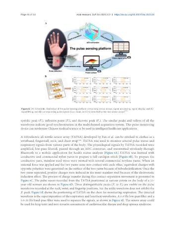 Figure 8. (A) Schematic illustration of the pulse-sensing platform comprising sensor arrays, signal processing, signal display, and 3D