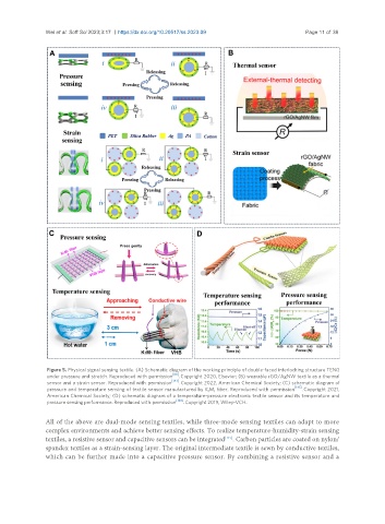 pressure and temperature sensing of textile sensor manufactured by K M fiber. Reproduced with permission [145] . Copyright 2021,
