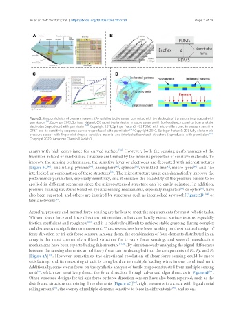 electrodes (reproduced with permission [78] . Copyright 2011, Springer Nature); (C) PDMS with micro-pillars used in pressure sensitive