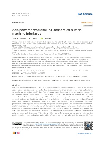 How to cite this article: Xi Y, Tan P, Li Z, Fan Y. Self-powered wearable IoT sensors as human-machine interfaces. Soft Sci