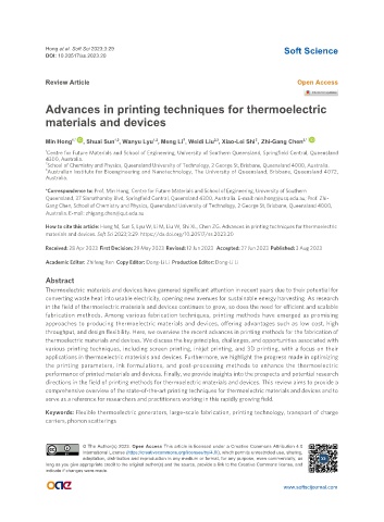 How to cite this article: Hong M, Sun S, Lyu W, Li M, Liu W, Shi XL, Chen ZG. Advances in printing techniques for thermoelectric