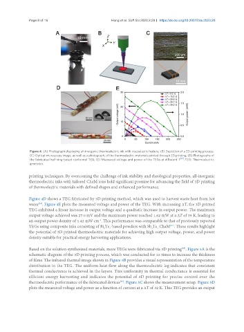 water . Figure 4E plots the measured voltage and power of the TEG. With increasing ΔT, the 3D printed