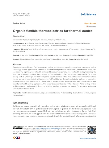 How to cite this article: Wang SJ. Organic flexible thermoelectrics for thermal control. Soft Sci 2024;4:25. https://dx.doi.org/10.