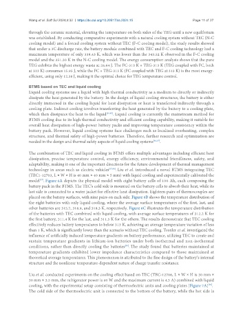 technology in areas such as electric vehicles [57,68] . Liu et al. introduced a novel BTMS integrating TEC
