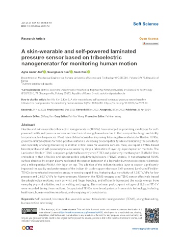 How to cite this article: Jan AA, Kim S, Kim S. A skin-wearable and self-powered laminated pressure sensor based on
