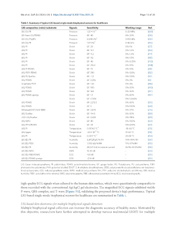 Table 1. Summary of typical LIG-based single-mode biophysical sensors for healthcare