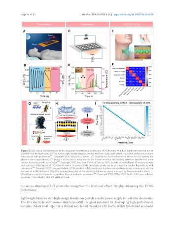 permission . Copyright 2023, Springer Nature; (G) Illustration of LIG-based dual-function acoustic transducers, including an artificial
