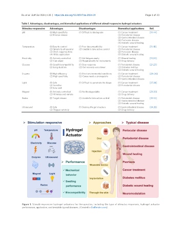 Table 1. Advantages, disadvantages, and biomedical applications of different stimuli-responsive hydrogel actuators