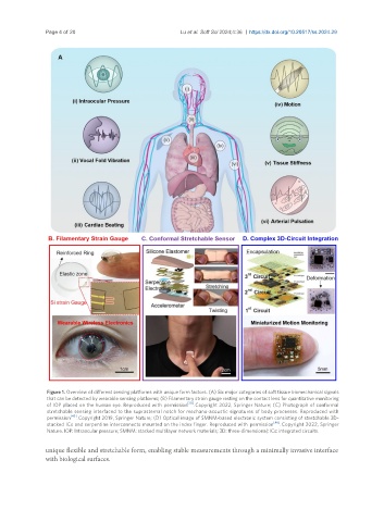 Figure 1. Overview of different sensing platforms with unique form factors. (A) Six major categories of soft tissue biomechanical signals
