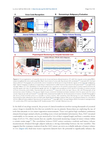 Figure 4. Clinical applications of wearable devices for tissue mechanics characterization. (A) Left: User request access using FENG-