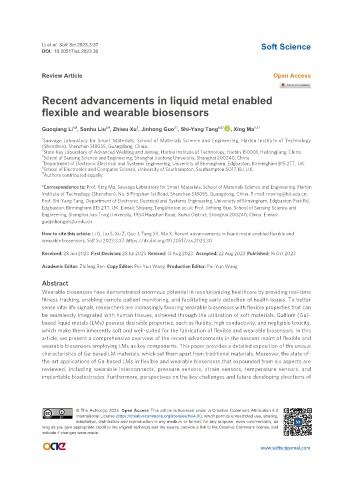 How to cite this article: Li G, Liu S, Xu Z, Guo J, Tang SY, Ma X. Recent advancements in liquid metal enabled flexible and