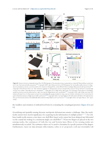 Copyright 2020, Elsevier B.V; (C) The resistance change of LM pressure sensors prepared by channel filling method for monitoring