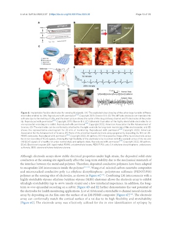Figure 8. Implantable flexible electrodes for sensing biosignals. (A) The exploded-view drawing of the ultra-large tunable stiffness
