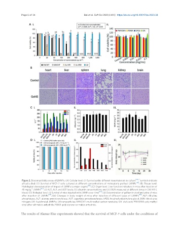 all cells died; (ii) Survival of MCF-7 cells cultured at different concentrations of molecularly grafted LMNPs ; (B) Tissue level.