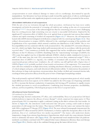 minimum dose of LMNPs (0.1 mg/mL), the viability of rewarmed cells exceeded 70%. Even in the