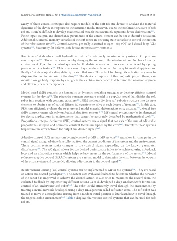 the unpredictable environment . Table 3 displays the various control systems that can be used for soft
