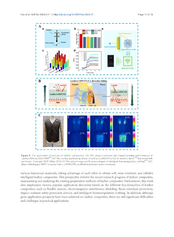 Figure 5. The application directions of leather composites. (A) The impact-resistant and impact-sensing performances of