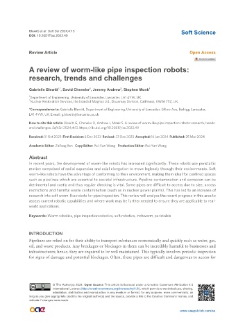 How to cite this article: Blewitt G, Cheneler D, Andrew J, Monk S. A review of worm-like pipe inspection robots: research, trends