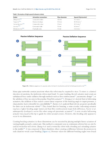 Figure 13. Inflation sequence of a passive valve inchworm mechanism, similar to that seen by Lim et al. [59] .