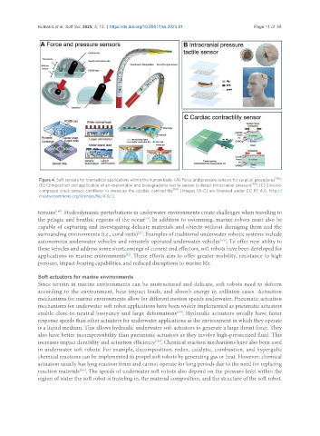 Figure 4. Soft sensors for biomedical applications within the human body. (A) Force and pressure sensors for surgical procedures [156] ;