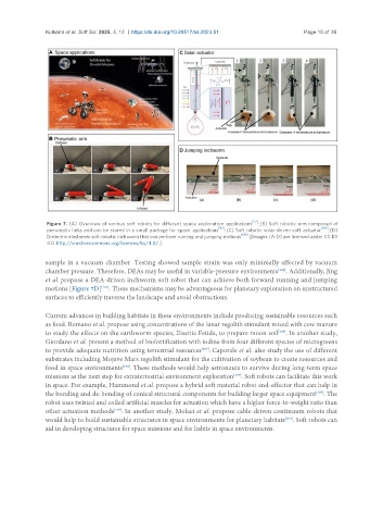 pneumatic links and can be stored in a small package for space applications [92] ; (C) Soft robotic solar-driven soft actuator [193] ; (D)