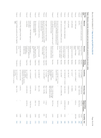Table 1. Structure, material, mechanism and main characteristic parameters of some classic e-skins
