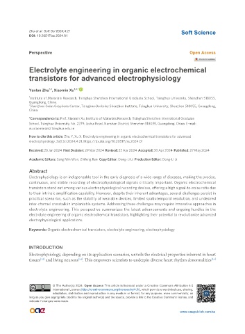 How to cite this article: Zhu Y, Xu X. Electrolyte engineering in organic electrochemical transistors for advanced