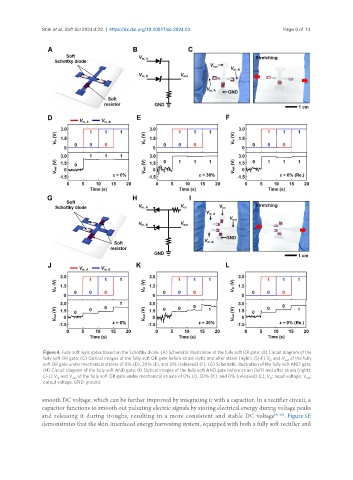 fully soft OR gate; (C) Optical images of the fully soft OR gate before strain (left) and after strain (right); (D-F) V and V of the fully