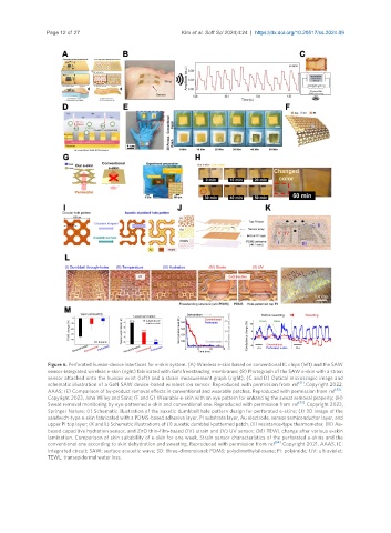 Figure 6. Perforated human-device interfaces for e-skin system. (A) Wireless e-skin based on conventional IC chips (left) and the SAW
