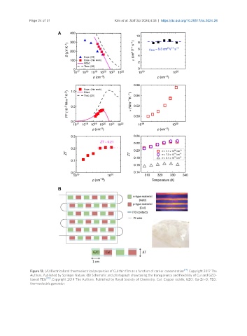 Figure 12. (A) Electrical and thermoelectrical properties of CuI thin film as a function of carrier concentration [27] . Copyright 2017 The
