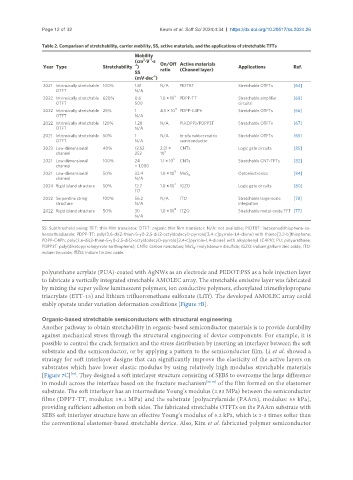 Table 2. Comparison of stretchability, carrier mobility, SS, active materials, and the applications of stretchable TFTs