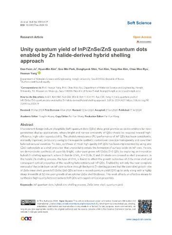 InP/ZnSe/ZnS quantum dots enabled by Zn halide-derived hybrid shelling approach. Soft Sci 2024;4:27. https://dx.doi.org/10.