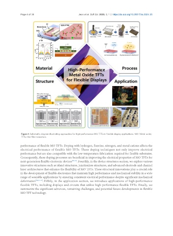 Figure 1. Schematic diagram illustrating approaches for high-performance MO TFTs in flexible display applications. MO: Metal oxide;