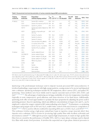 Table 5. Summarized electrical characteristics of various materials dopped MO semiconductors