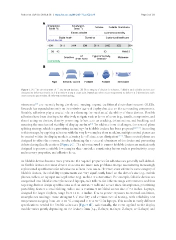 Figure 1. (A) The development of IT and smart devices; (B) The changes of device form factor. Foldable and rollable devices are