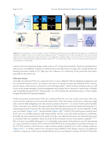 patterned electrolyte. Reproduced with permission [50] . Copyright 2020, Springer Nature; (C) Flexible ECD with 3D direct printed