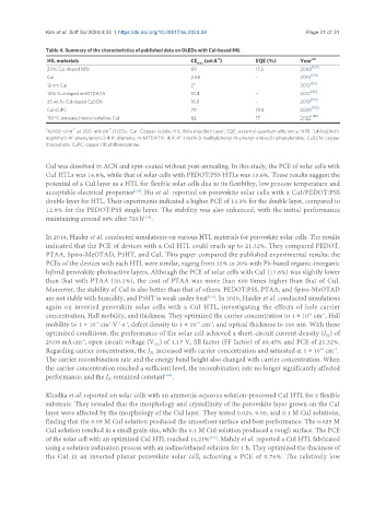indicated that the PCE of devices with a CuI HTL could reach up to 21.32%. They compared PEDOT,