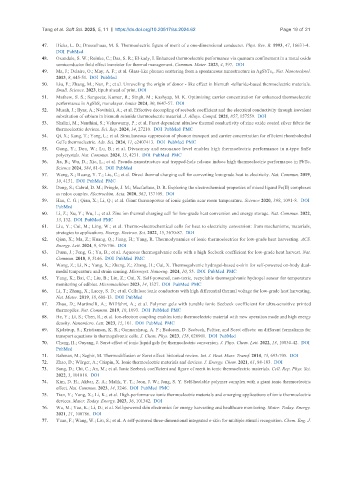 59. Han, C. G.; Qian, X.; Li, Q.; et al. Giant thermopower of ionic gelatin near room temperature. Science 2020, 368, 1091-8. DOI