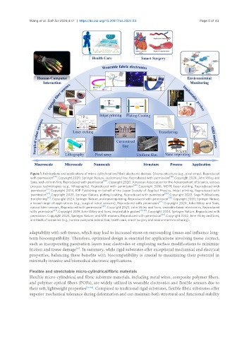 Figure 1. Fabrications and applications of micro-cylindrical and fibric electronic devices. Diverse structure (e.g., pixel array), Reproduced