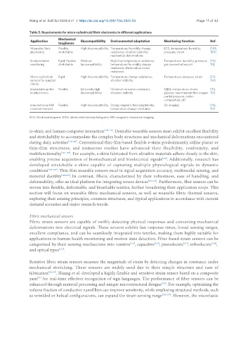 Table 5. Requirements for micro-cylindrical/fibric electronics in different applications