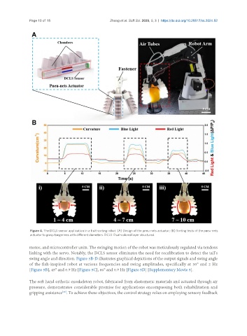 Figure 4. The DCLS sensor application in a fruit sorting robot. (A) Design of the pneu-nets actuator; (B) Sorting tests of the pneu-nets