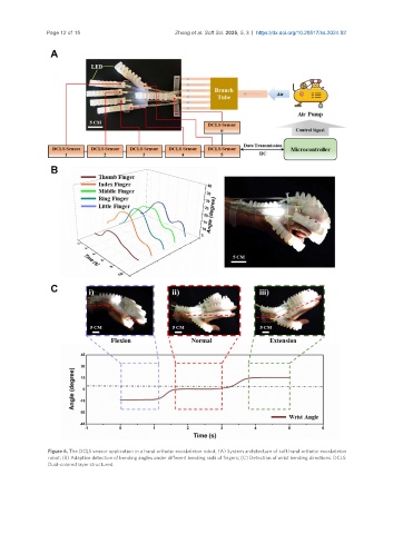 robot; (B) Adaptive detection of bending angles under different bending radii of fingers; (C) Detection of wrist bending directions. DCLS: