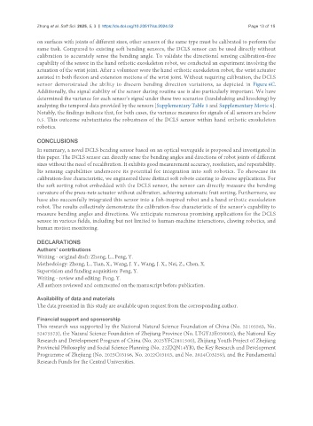 this paper. The DCLS sensor can directly sense the bending angles and directions of robot joints of different