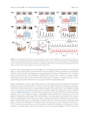 elbow and knee joint; (E) Response signals recorded during speaking “Hello” and (F) “Good morning” respectively; (G) Photography of