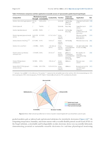 Table 1. Performance comparison and their application in wearable sensors of representative gelatin-based tough biogels
