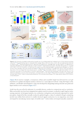 simulation [28] . Reprinted with permission. Copyright 2020, Springer Nature; (B) Construction of soft e-skin on biogel substrate attached