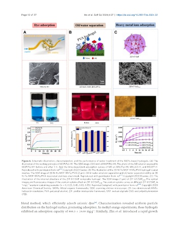 Figure 6. Schematic illustration, characterization, and the performance of water treatment of the MOFs-based hydrogels. (A) The